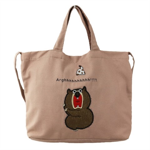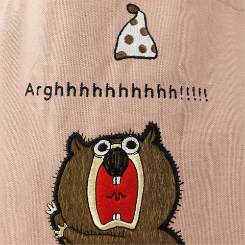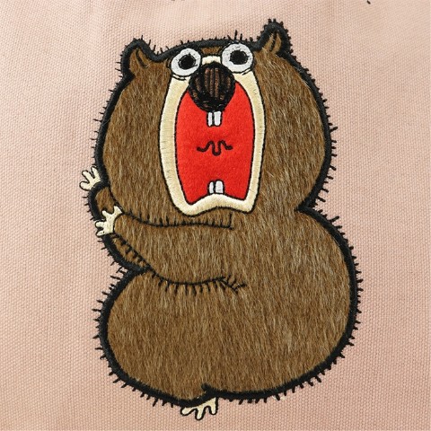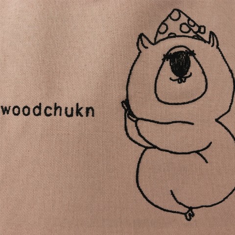 そのウッドチャックをデザインに落とし込んだトート。デザイン部分は異素材をし、刺繍しております。