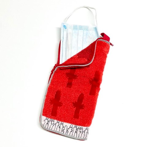 タオルハンカチと見せかけて実はポーチ!小物入れとしてはもちろん、冷たいペットボトルを入れても保冷剤を入れてアイピローにしても便利なポーチです。リトルミイをイメージした赤をベースにニョロニョロのシルエット柄が特徴的なデザイン!ポーチ下部のニョロニョロやミイもワンポイントでキュートです!