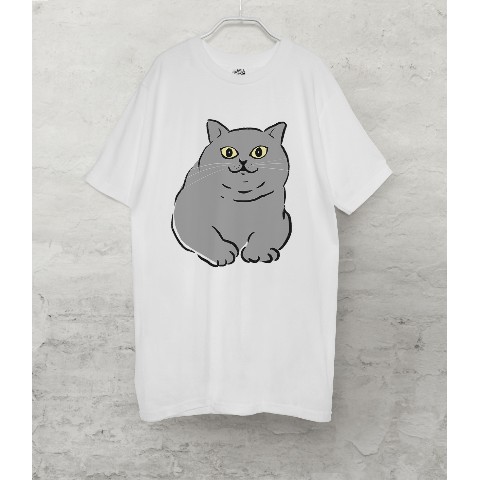 【せいこせんせい】ブリティッシュショートヘア Tシャツ(ホワイト)猫 XLサイズ