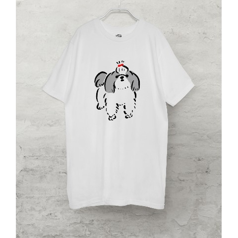 【せいこせんせい】シーズー おしゃれ Tシャツ(ホワイト)犬 Mサイズ