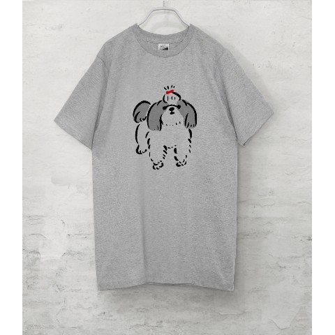 【せいこせんせい】シーズー おしゃれ Tシャツ(グレー)犬 XLサイズ