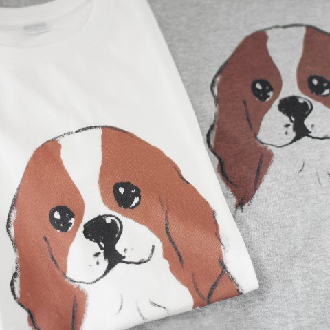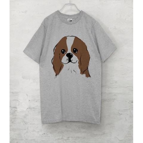 【せいこせんせい】キャバリア Tシャツ(グレー)犬 Mサイズ