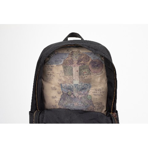 バックパックのファスナーを開くと背面に奈落の見取り図がプリントしてあり、アビスの呪いが描かれたポーチが付属で付いています。