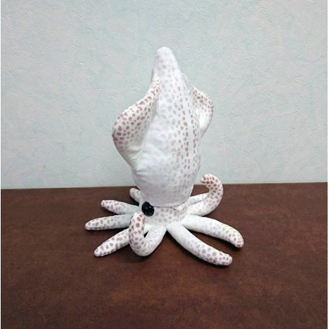 光を蓄える蓄光生地を使用したホタルイカのぬいぐるみ!