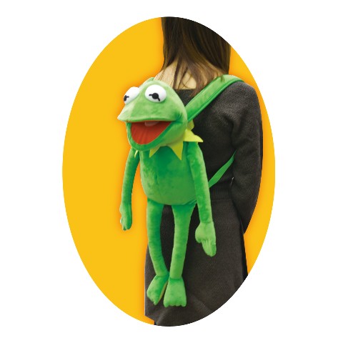 カーミットのプリントと、アクリルチャームがポイントのガジェットポーチ