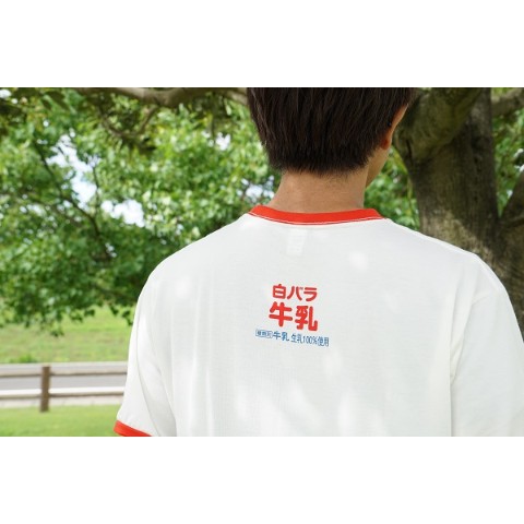 2017年、鳥取県民のソウルドリンクとしてお馴染み「白バラ牛乳」のパッケージデザインをそのまま施し、白バラファンだけでなくメディアもざわつかせた存在感バツグンの「白バラ牛乳Tシャツ」。