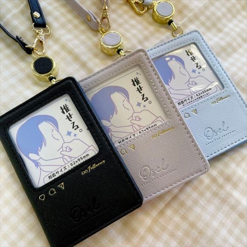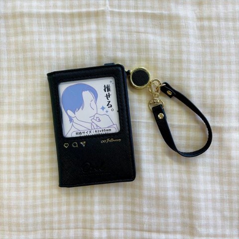 【推し事】Oselリール付二つ折りパスケース(ブラック)