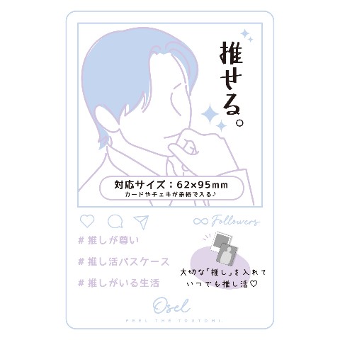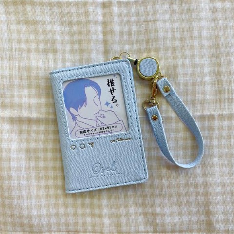 【推し事】Oselリール付二つ折りパスケース(ライトブルー)