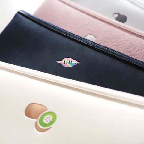 モチーフの箔押しが両面に、ファスナーの歯が生地と同色の樹脂ファスナーになりました。
