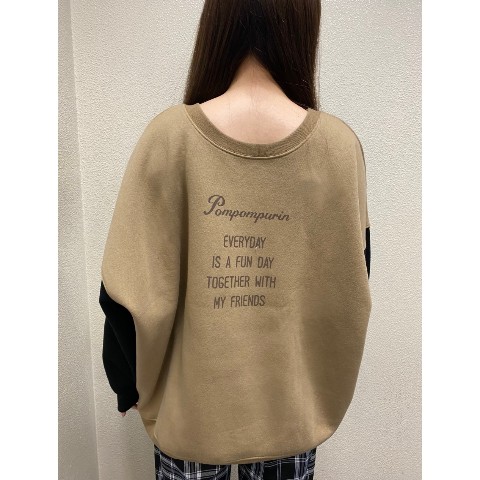 【サンリオ】ポムポムプリン裏起毛2WAYプリントトレーナー Fモカ
