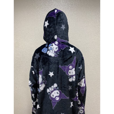 【サンリオ】クロミ ルームウェア 総柄モコフワ着る毛布 Lブラック