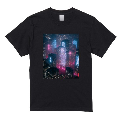 【nagafujiriku】Tシャツ ブラック ネオンナイト(XLサイズ)