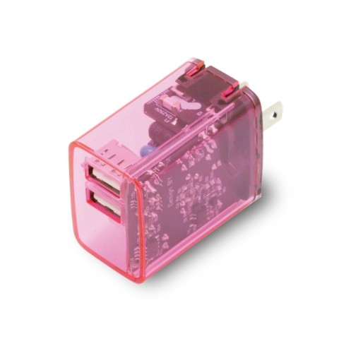 【Melia】同時充電対応Smart IC付きクリアAC充電器ピンク