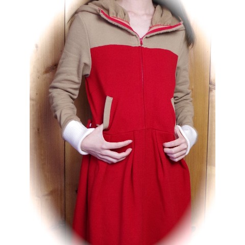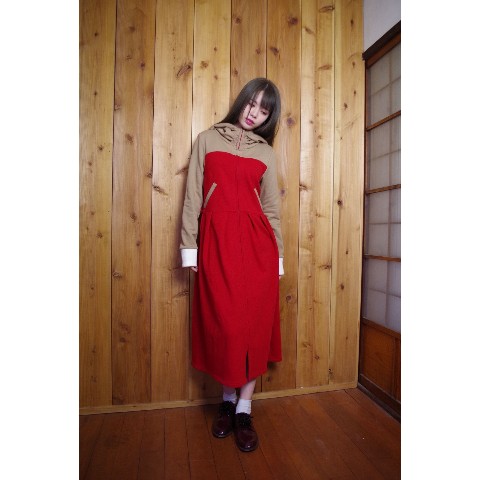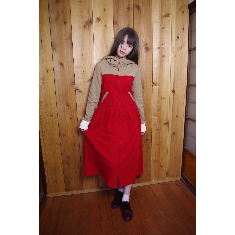 エプロンの形をイメージして作った切り替えパーカーワンピースです。
