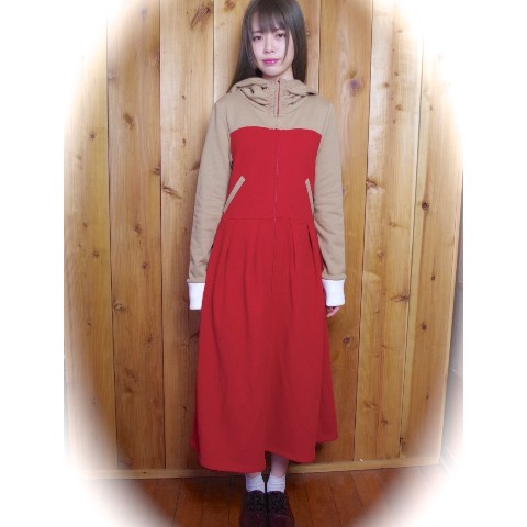 珍しいロング丈のワンピースで、ファスナーで全開できます。