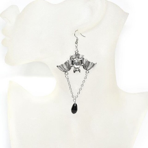 コウモリが羽を広げてぶら下がったデザインのピアス。