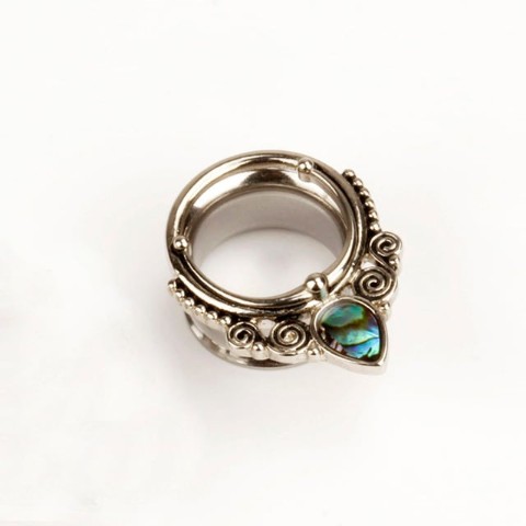 ダブルフレアタイプのホールピアスにドロップ型のモチーフが付いた、女性らしいBODYpieace