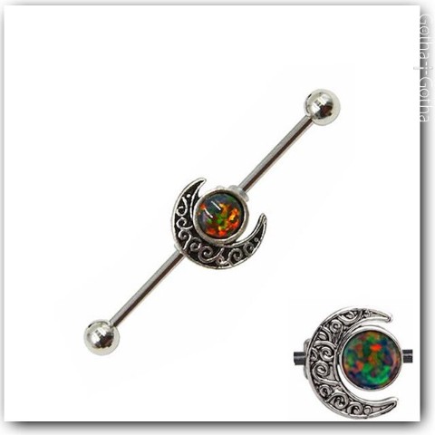 オパール調ストーンの入ったMOONモチーフインダストリアルピアス。