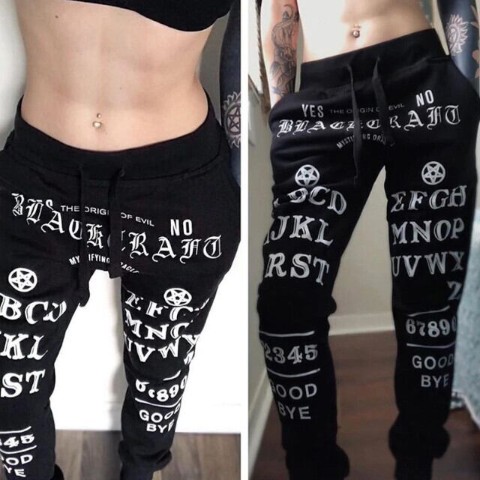 Ouijaボードがデザインされたオカルトチックなスウェットパンツ