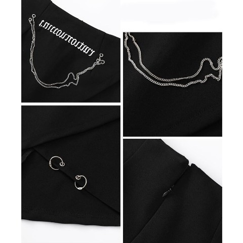 しっかりした伸縮性のある厚手のジャージ素材に、チェーンやリングのさりげないこだわり。