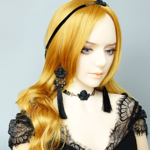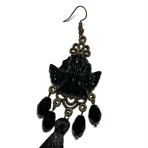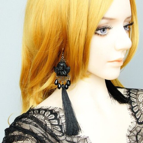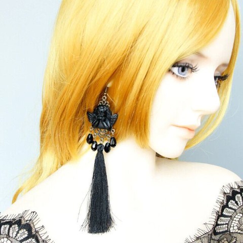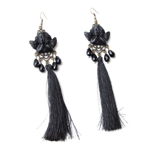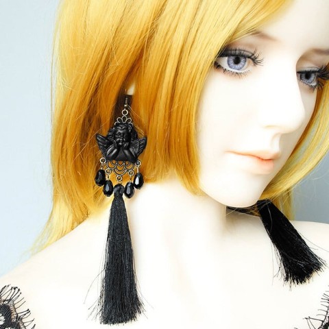 頬杖をついた光沢感のあるラファエロの天使がモチーフ。ゴシックテイストのピアス。