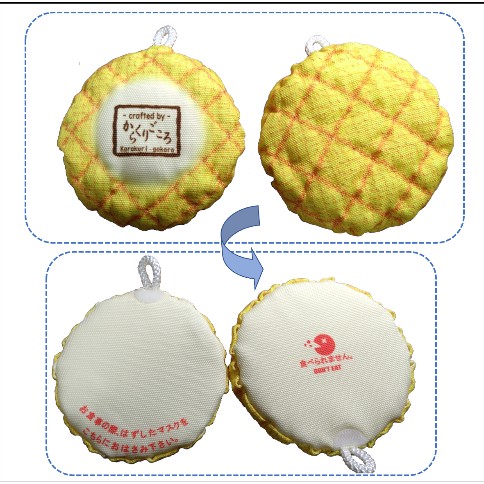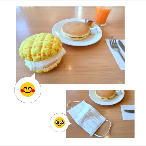メロンパン型のマスク置きです。食事の際、外したマスクの扱いにお困りの方におススメです!本商品にマスクをはさんで保管するだけで食卓の景観をさり気なくキープすることが出来ます。中身はスポンジなので圧縮してバッグの中にも収納できます。快適なマスク生活の一助にどうぞ!