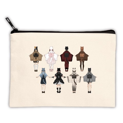 「猫×帯カバン」シリーズ集合柄のフラットポーチです!何回でもカバンから出したい!