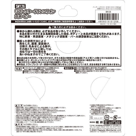 『ピカッと反射で夜間も煽り運転防止に!スヌーピーがドライブレコーダー録画中をお知らせ★』