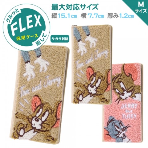 【トムとジェリー】汎用手帳型ケース FLEX M サガラ刺繍 トムとジェリー モコモコ
