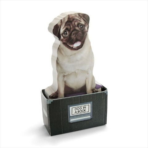 立てられるボックスに入ったかわいらしいパグのダイカットフセン。
