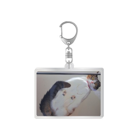 無重力猫ミルコさんのお家だからこそ撮れるピーチの写真がアクリルキーホルダーに。