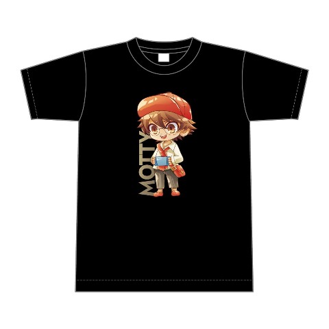 チャームポイントの赤い帽子を被ったデフォルメMOTTYさん!【はなさくの】さん描き下しイラストが描かれた限定Tシャツ