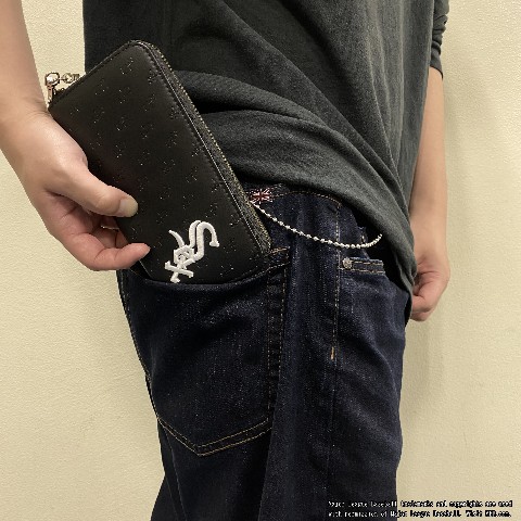 【MLB】長財布 PU型押し総柄刺繍 ブラック シカゴ・ホワイトソックス(ロゴ右下)