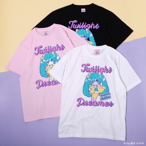 陽子さんによる描き下ろしの初音ミクと、ネオンサイン風の「Twilight Dreamer」のロゴをプリントしたTシャツ。