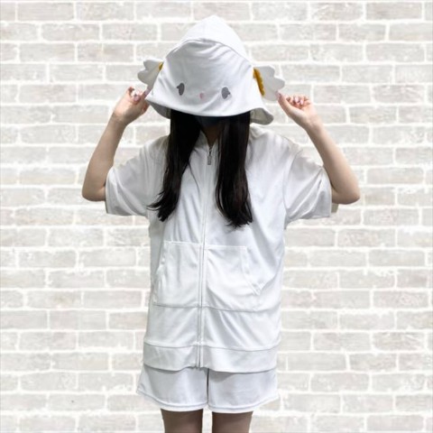 人気キャラクタ-をフ-ドにデザインしたル-ムウェア上下。