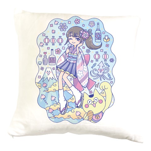 表裏に2種類のイラストをプリントしたスクエアクッション!