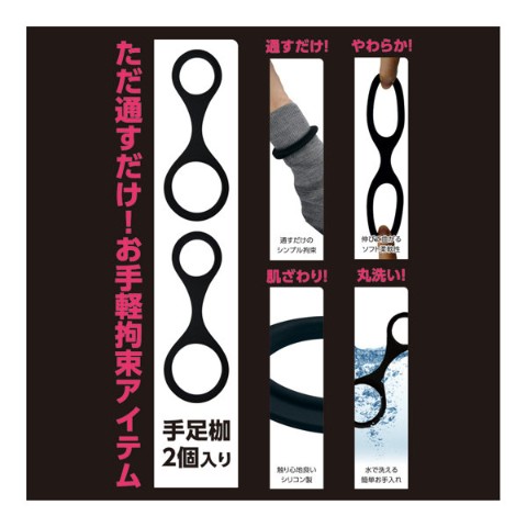好きなあの子をいいなりに……。ただ通すだけでしっかりSMプレイになる、超シンプルな拘束具「SMシリコン手足枷」!SMプレイの核心となる「拘束」を、とってもお手軽にするSMアイテムです。輪っかの中に、手や足をただ通すだけ。難しいことが一切無いシリコン枷です。本体のシリコン素材には柔軟性がありますので、装着感もバツグン。大きさは、男性でも装着可能なフリーサイズ。シンプル構造ですので、丸洗いもできてメンテナンスも簡単。見た目もシンプルですのでタブー感も薄く、ソフトなSMプレイにぴったりです。「手足枷」は、片方は手枷、もう片方は足枷となる、ハーフ&ハーフモデルが2個付いたセットです。両方の手首と足首を繋げて拘束することができます。手と足を拘束することで、前屈み、海老反り、強制開脚、M字開脚、V字開脚、などなど多彩な緊縛ポージングを演出いただけます。スッと通すだけで簡単に拘束プレイを楽しめます!
