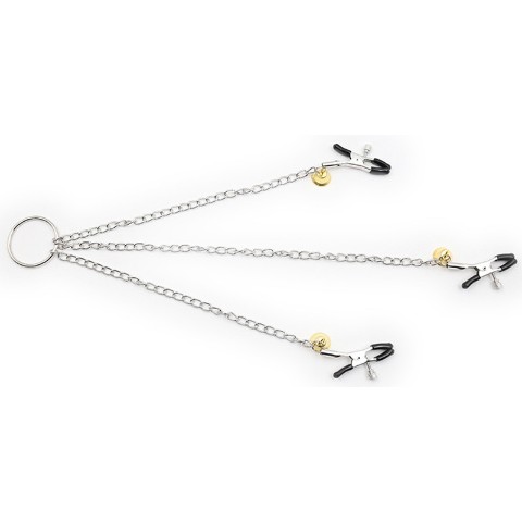 感じやすい部分をダイレクトに刺激、乳首とク○の三点責め可能なクリップチェーン、柔らかく弾力のあるゴムで覆われている先端は、はさむ強さを調整出来るので痛すぎる心配はありません。クリップを装着した上に服をまとって外出、鈴の音が周囲にばれないか試してみてはいかがですか。ドキドキが止まらない興奮度MAXの逸品です。※本品はジョークグッズとなります。その他の目的でご使用された際の責任等は一切負いかねますのでご了承ください。素材:金属