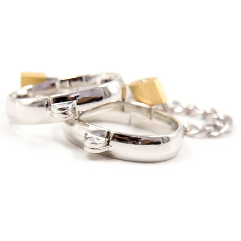 鏡面仕上げで美しく、シンプルなデザインの金属製手枷素材ならではの重量感があり、しっかりとホールドされます。ほかのアイテムとの相性も抜群!幅広い使い方は、想像力をかきたてます。冷たい金属の質感とほかの素材にはないホールド感の違いを恥ずかしい姿に酔いしれながら味わってください。※本品はジョークグッズとなります。その他の目的でご使用された際の責任等は一切負いかねますのでご了承ください。素材:合金メッキカラー:シルバー
