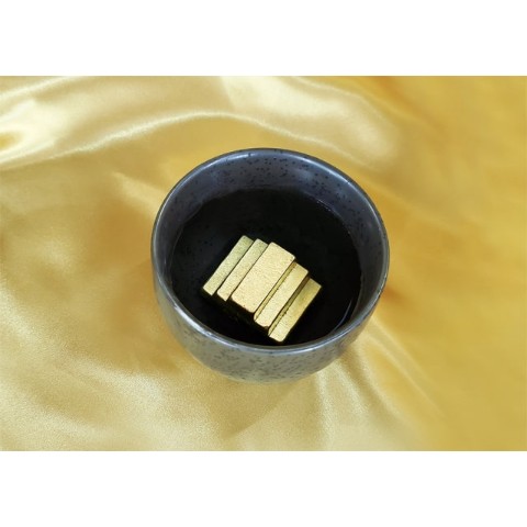 精密鋳造にてインゴットの形に鋳造後(錫100%)、京都の職人が表面に金箔を施した一品です。