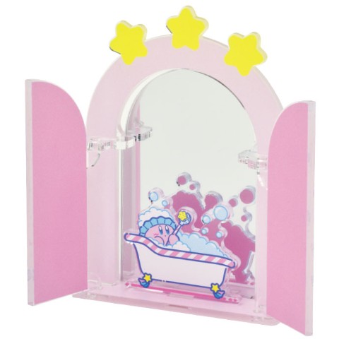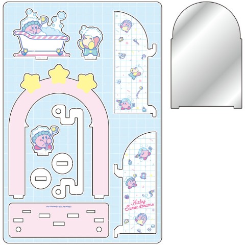 カービィたちのリラックスバスタイムをイメージしたアートワーク「カービィ・スイートドリームス」のイラストが、アクリル製の組み立てキットになりました。組み立てると手のひらサイズのスタンドミラーになり、扉を開閉したり、実際に姿を映して使うことができます。
