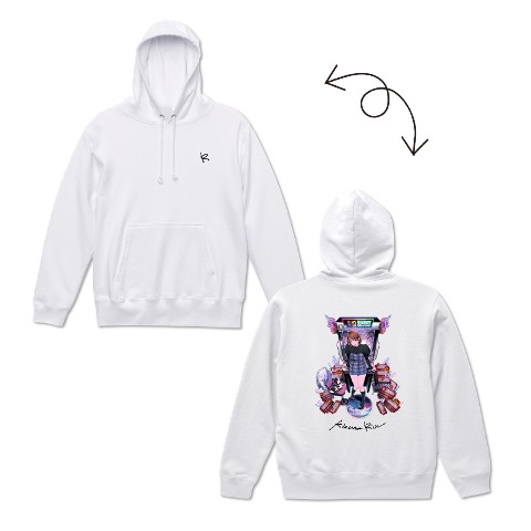 【絆りん】 刺繍入りパーカー/ホワイト(XLサイズ)<ポストカード付き>