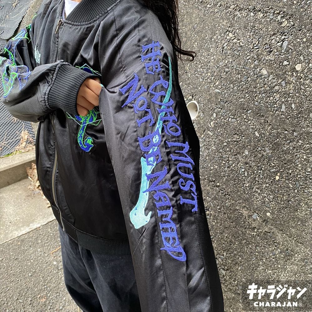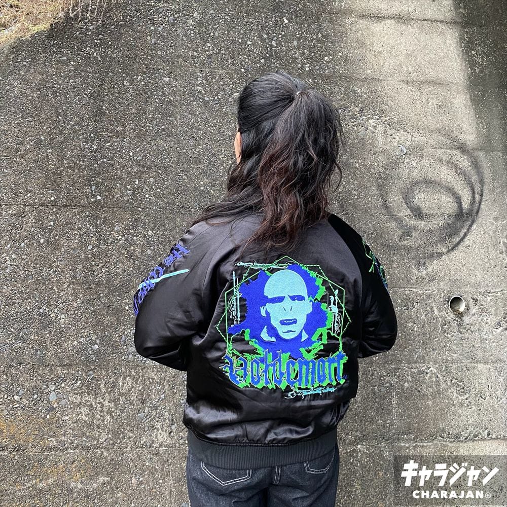 インパクト抜群!名前を呼んではいけないあの人、と世間で呼ばれる最強の闇の魔法使いヴォルデモートが背面に大きくデザインされたスカジャンです。