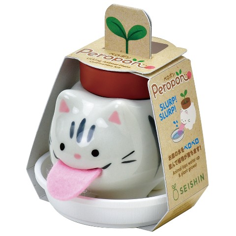 ぺろぺろとお水を飲んでいるような容器に入った可愛い栽培セット「ペロポン」にネコたちが仲間入り!♪