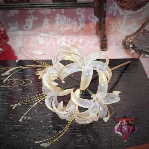 白をベースにした彼岸花でゴールドとグラデーションを施しました。存在感のある作品です。