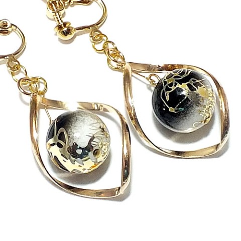 大人っぽい黒色からホワイトへのグラデーションが美しい和風ビーズを使用したイヤリングです。