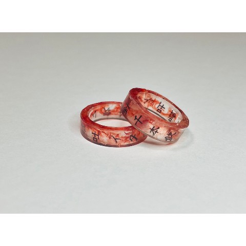 指切り歌の入った指輪です。お色は血を流したような紅。一つ一つ手作りの為、色味に個体差がございます。ご了承くださいませ。