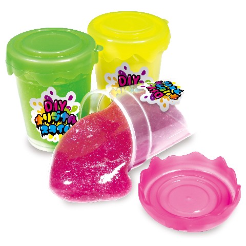 【素材】水・グリセリン・四ホウ酸二ナトリウム・ホウ酸(スライム)、PP(カップ)、PVA、ホウ砂、防腐剤(スライムパウダー)、PET(グリッター)、TPR(フィギュア)