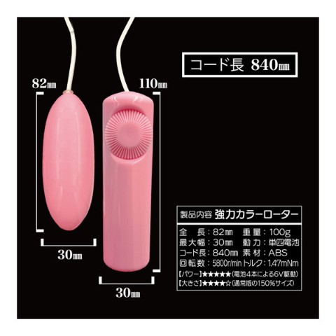 普通のピンクローターじゃ弱くてもう満足できない……、そんなお悩みにピッタリな強力ピンクローターが新登場!大きく&強く!ハイパワーがあなたをさらに気持ち良くします!ローター部分は、通常の150%にサイズアップ。サイズを大きくすることで、通常では使用出来なかった力強い振動モーターを採用しました。電池ボックス部分には、アルカリ単四電池の4本駆動。電池容量を大きくすることで、モーター能力を余すことなくパワーに変えます。大きくなったローター部分は全長82ミリで、存在感もバツグンです。電池ボックスは、電池がセットしやすいカートリッジ式。振動の強さを調整できる無段階ダイヤル。大きさも強さも快感もストロングレベル!パワー!