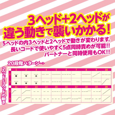 この驚くべき振動ローターは、パートナーを異世界の快感に誘います。5つのパワフルなローターユニットが、パートナーに予想以上の強烈な刺激を与えます。あなたは、20の異なる振動パターンを選ぶことができ、自分だけの完璧なイメージでパートナーとのプレイをカスタマイズすることができます。そして、このローターの振動がパートナーの体を駆け巡る狂気的なブルブル感とパートナーのトランス感に、あなたは虜になるでしょう。簡単に使え、持ち運びにも便利なこのローターは、パートナーの肉体を震わせ、精神を刺激する驚異的なおもちゃです。パートナーはトランス状態になり、快楽と陶酔に溺れ、それをあやつるあなたにも驚異的な満足感が訪れることでしょう。また一人Hにも最適で圧倒的な快感とトランス感を与えます。